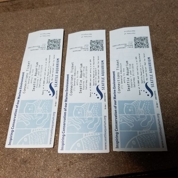 3 Seattle Aquarium Tickets ($10 each) the Tickets price is $34.95 for Adults for Sale in Seattle